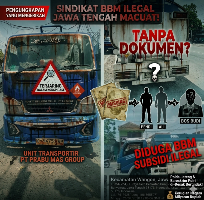 Banyumas | Delikperkara – Sindikat BBM ilegal kembali macuat di Jawa tengah, di dominasi mengunakan PT Prabu mas Grup. Sedot Habis BBM subsidi yang ada di jawa tengah.