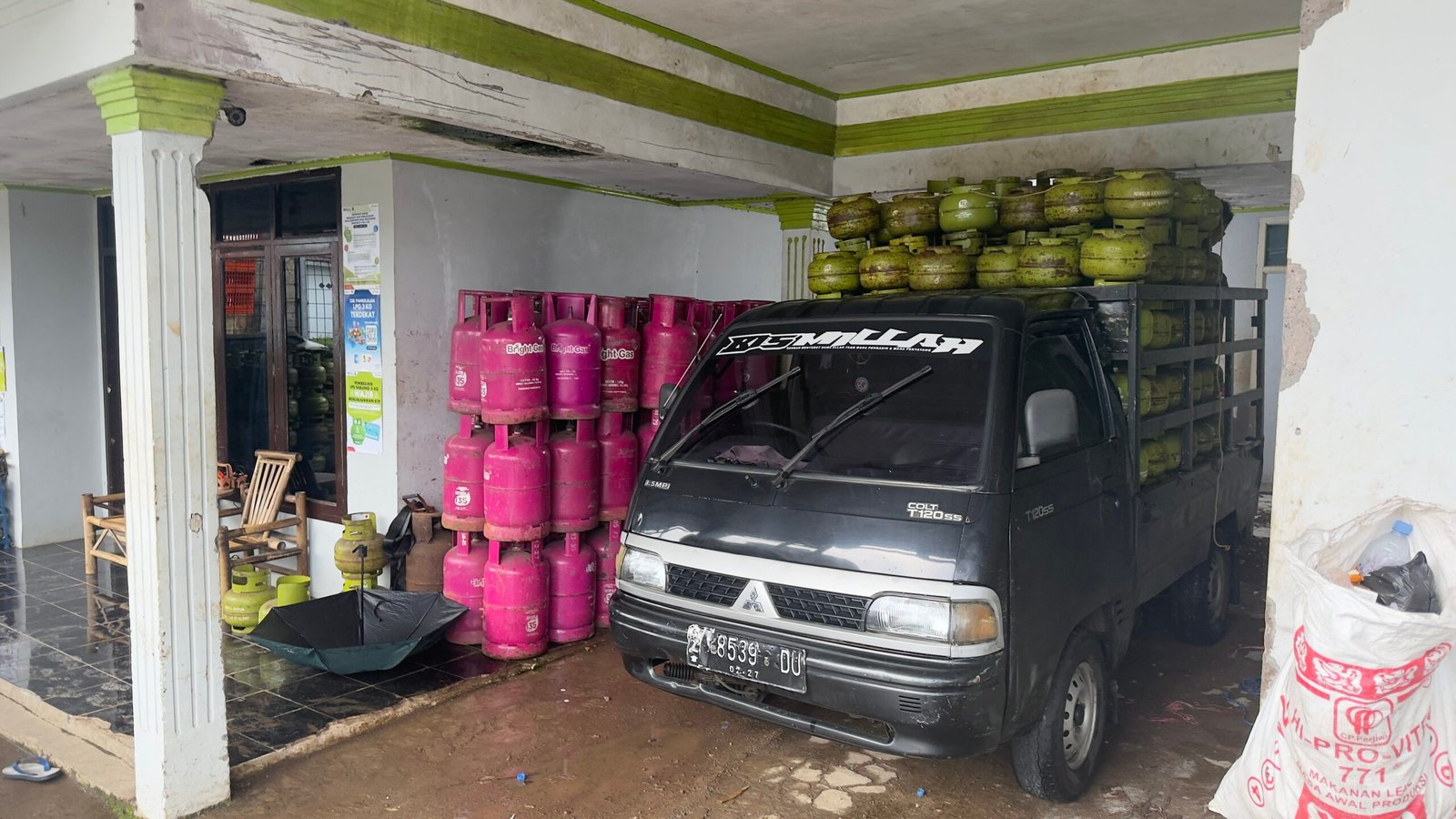 Ironisnya, di lokasi tidak ditemukan plang resmi pangkalan gas LPG 12 kg maupun 50 kg. Bahkan, plang pangkalan LPG 3 kg pun terlihat tidak terpasang sebagaimana mestinya. Selain itu, ditemukan pula sebuah truk berwarna merah pengangkut LPG tanpa identitas perusahaan, baik PT maupun CV, yang jelas melanggar ketentuan distribusi migas.